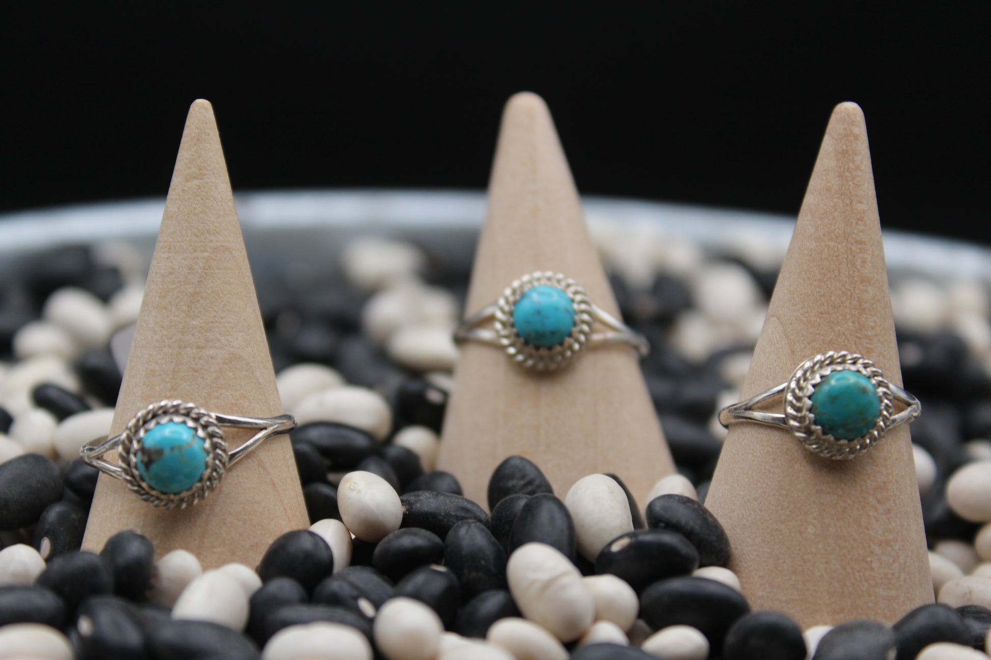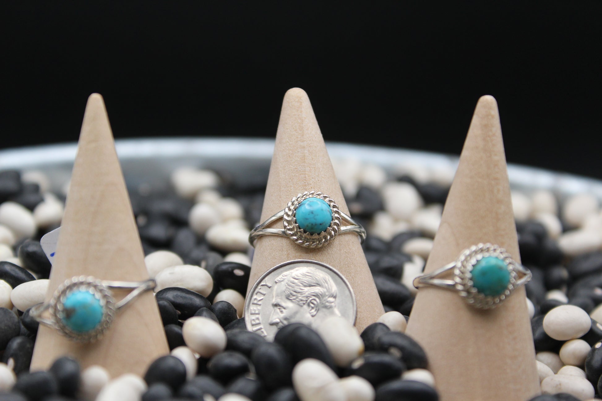 Embrace the timeless beauty of Native American craftsmanship with this classic turquoise ring. Featuring a round blue-green turquoise stone with a striking dark matrix, this sterling silver ring is rich in traditional detailing. A sawtooth bezel and twisted wire frame enhance the stone’s natural beauty, while the split shank band adds a refined touch. A perfect blend of heritage and style, this ring is a must-have for turquoise lovers and collectors alike.