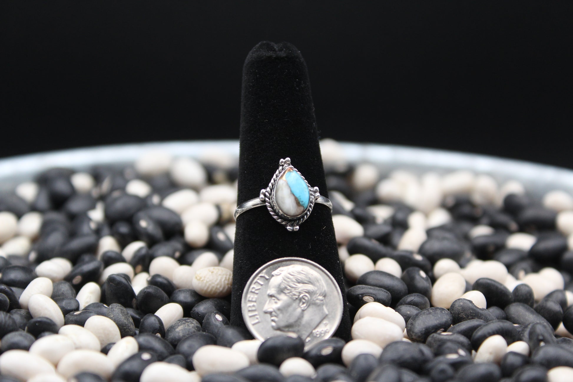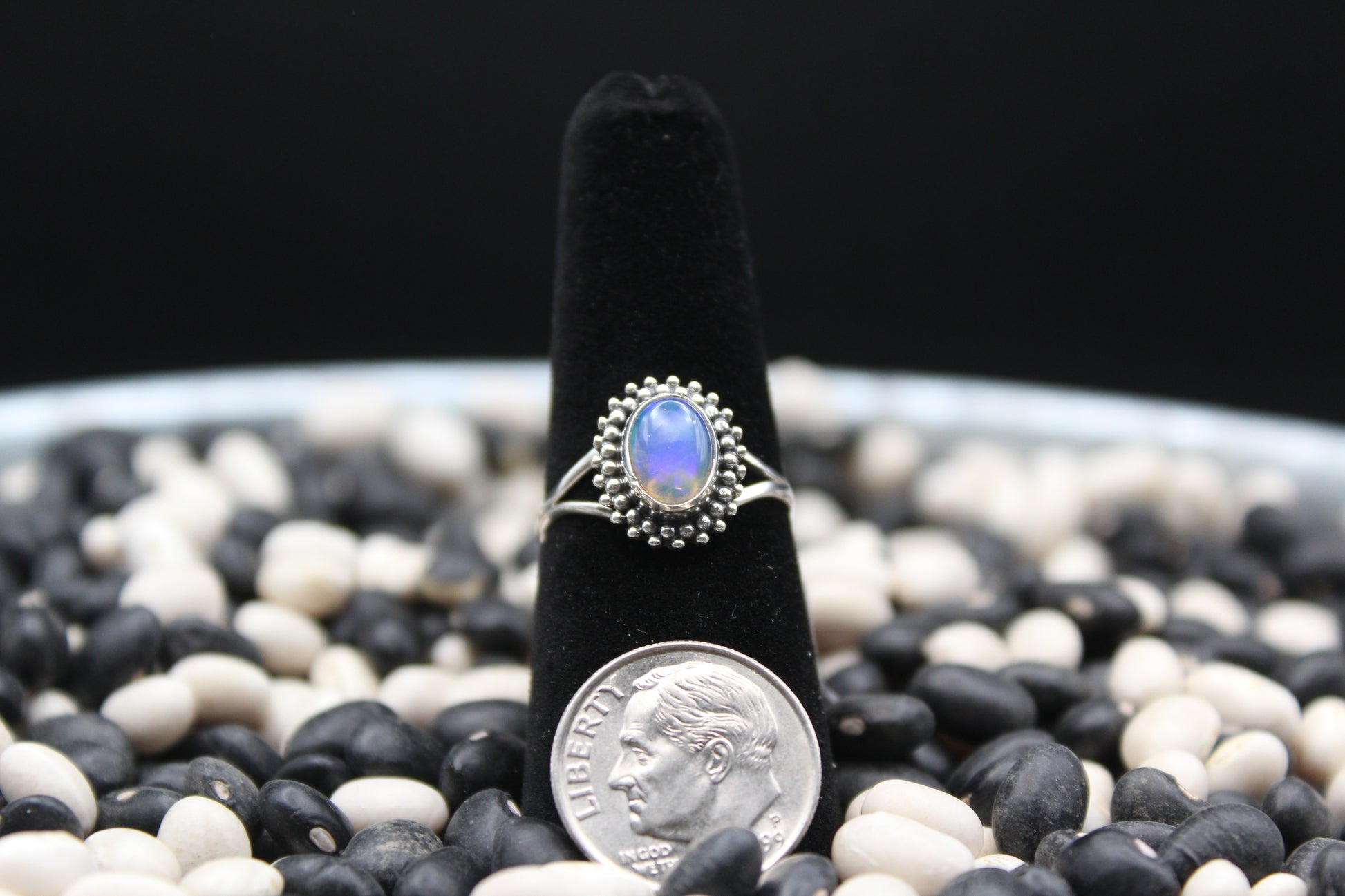 Looking for a dainty yet eye-catching ring? These .925 sterling silver rings are sized at 7 and feature one-of-a-kind stones, each with its own unique beauty. Whether you're drawn to the earthy tones of wild horse, the vibrant hues of turquoise, or the shimmer of opals, there's a ring here meant just for you!