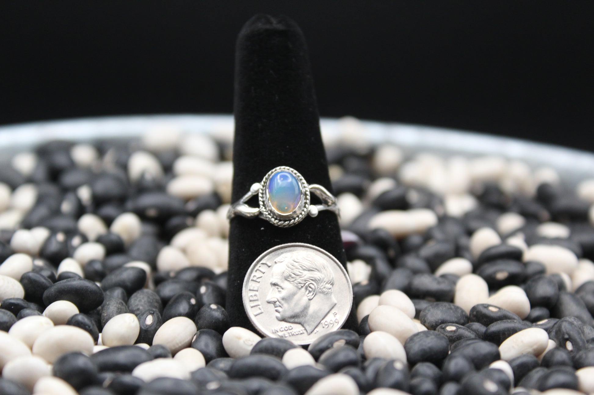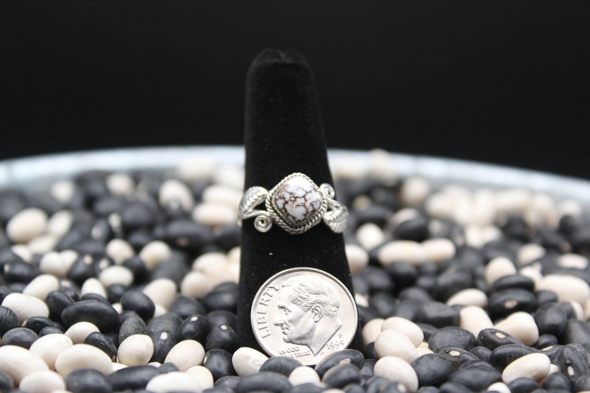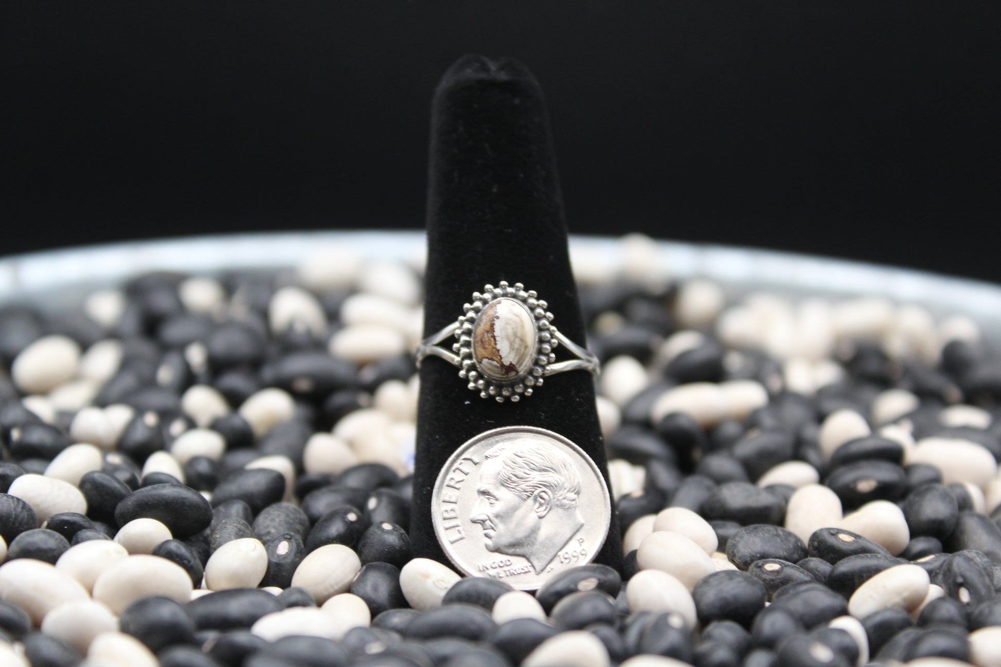 Looking for a dainty yet eye-catching ring ? These .925 sterling silver rings are sized at 8 and feature one-of-a-kind stones , each with its own unique beauty. Whether you're drawn to the earthy tones of wild horse, the vibrant hues of turquoise, or the shimmer of opals, there's a ring here meant just for you!
